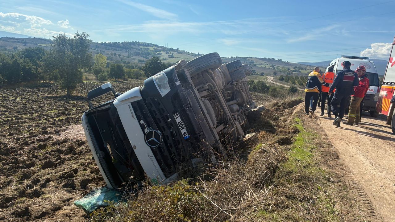 Mıcır taşıyan kamyon, henüz belirlenemeyen bir nedenle kontrolden çıkarak şarampole devrildi.