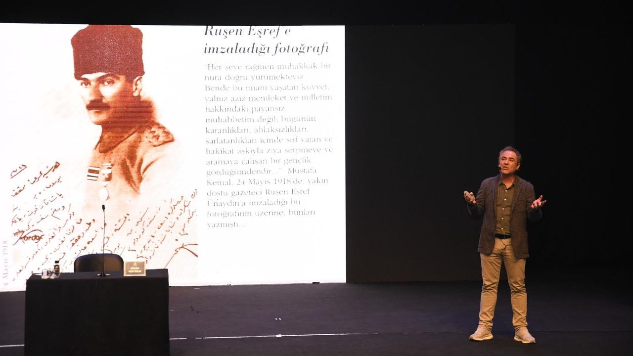 Atatürk’ün 24 Mayıs 1918’de gazeteci arkadaşı Ruşen Eşref Bey’e imzalayıp verdiği fotoğrafın altına yazdıklarını paylaşan Sinan Meydan “ ‘Her şeye rağmen muhakkat bir nura doğru yürümekteyiz, bende bu imanı yaşatan kuvvet, yalnız aziz memleket ve milletim hakkındaki sınırsız muhabbetim değil. Bu günün karanlıkları, ahlaksızlıkları, şarlatanlıkları içinde sırf vatan ve hakikat aşkıyla ışık serpen ve arayan bir gençlik gördüğümdendir.’ İşte, İstiklal Harbi’nin ve cumhuriyetin arkasındaki inanç budur. İstiklal Harbi’ni nasıl kazandık, Cumhuriyeti nasıl kurduk diye soruyorlar bana İşte, bu inançla kurduk. Atatürk’ün bu inancı ve umuduyla kurduk. Umudu kaybetmemek çok önemli, bunu bize Mustafa Kemal Atatürk öğretti. Umudumuzu asla kaybetmeyeceğiz.” şeklinde konuştu.