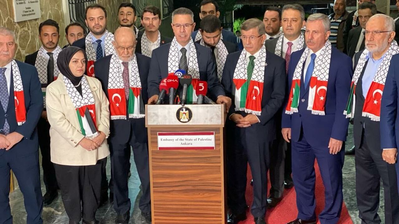 Gelecek Partisi Genel Başkanı Davutoğlu ise Filistin meselesinin sadece Müslümanların değil, insanlığın meselesi olduğuna dikkati çekerek, "Sürgünlerle katliamlarla büyük baskılarla karşı karşıya kalmış bir halkın kendi kaderini tayin etme hakkı dahil direnme hakkı da vardır." diye konuştu.