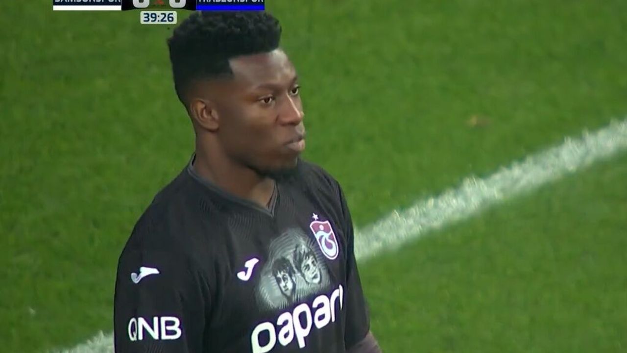 Türkiye Kupası'nda yarı finale yükselme mücadelesi veren Trabzonspor, sahaya sadece futboluyla değil, sergilediği vefa örneğiyle de çıktı. Maçın 40. dakikasına girilirken yayıncı kuruluşun ekranlarına yansıyan görüntülerde, kaleci Onana'nın siyah formasında yer alan özel baskı dikkat çekti.