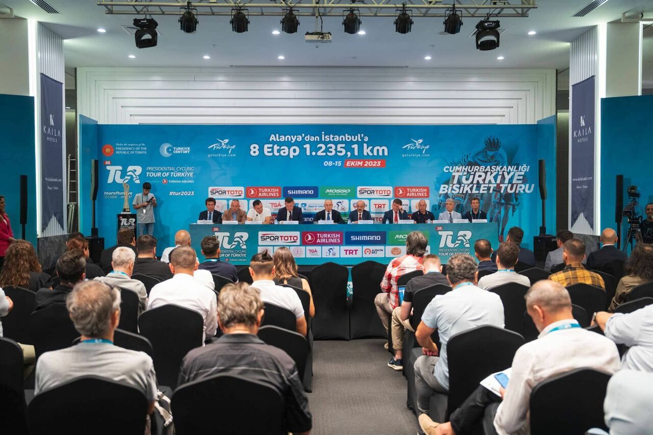 Türkiye'nin en uzun soluklu ve en prestijli yol bisikleti yarışı olan Cumhurbaşkanlığı Türkiye Bisiklet Turu’nun Alanya basın toplantısı, Alanya Kaymakamı Sayın Fatih Ürkmezer, İçişleri Bakanlığı TUR 2023 Güvenlik Genel Koordinatörü Muhammed Şahin, Alanya Belediye Başkanı Adem Murat Yücel, Antalya Gençlik ve Spor İl Müdürü Yavuz Gürhan, Türkiye Bisiklet Federasyonu Başkanı Emin Müftüoğlu ile Türkiye Bisiklet Federasyonu Asbaşkanı Metin Cengiz, Türkiye Bisiklet Federasyonu Başkan Vekili Fikret Hayali katılımıyla Alanya’da gerçekleştirildi.