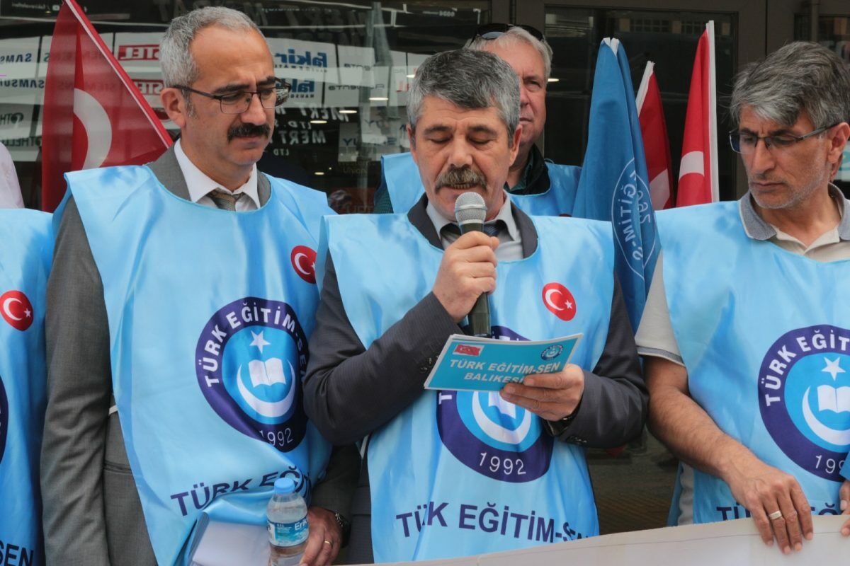 Türk Eğitim-Sen Balıkesir 1 Nolu Şube Başkanı Ahmet Baki yazdıkları mektubu okuyarak, öğretmenlerin yeni kanundan beklentilerine dikkat çekti.