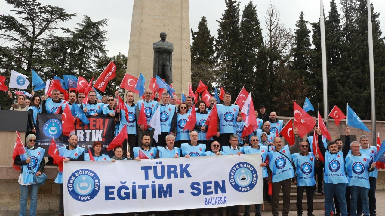 Sendika binasından Atatürk Anıtına kadar Milli eğitim Bakanını istifaya çağıran sloganlar atarak yürüyüş gerçekleştiren Türk Eğitim Sen Balıkesir Şubesi anıta saldırılarda hayatlarını kaybedenler için karanfil bıraktı. Türk Eğitim Sen Balıkesir Şube Başkanı Ahmet Baki Atatürk Anıtında yaptığı konuşmada bu tür menfur saldırıların sol bulması temennisinde bulunarak saldırıların sadece öğretmen ve öğrencilerin değil toplumun her kesiminin meselesi olduğuna dikkat çekti. Velilere seslenen Ahmet Baki, “Biz yıllardır dile getirdik, söyledik, söyledik ama ne yazık ki bir arpa boyu yol alamadık. Gelin okullarımıza, öğretmenlerimize, eğitim çalışanlarımıza, öğrencilerimize birlikte sahip çıkalım” dedi.