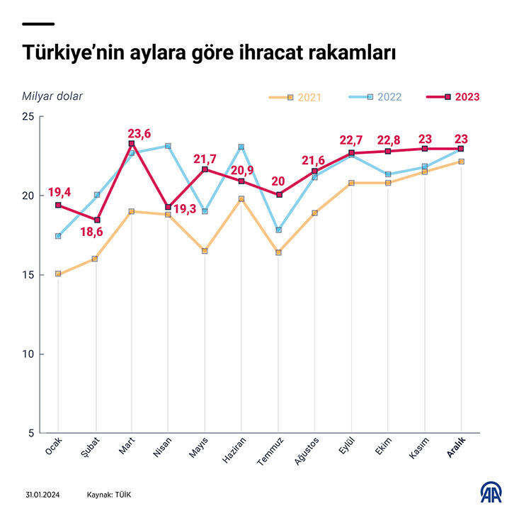 Ticaret Bakanlığı ve Türkiye İstatistik Kurumu işbirliğiyle oluşturulan geçen yılın aralık ayı ve 2023 yılı geneline ilişkin geçici dış ticaret verileri açıklandı.