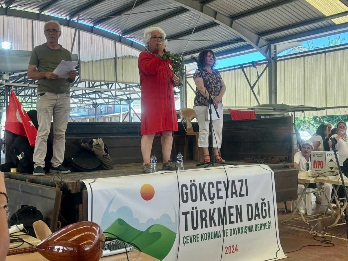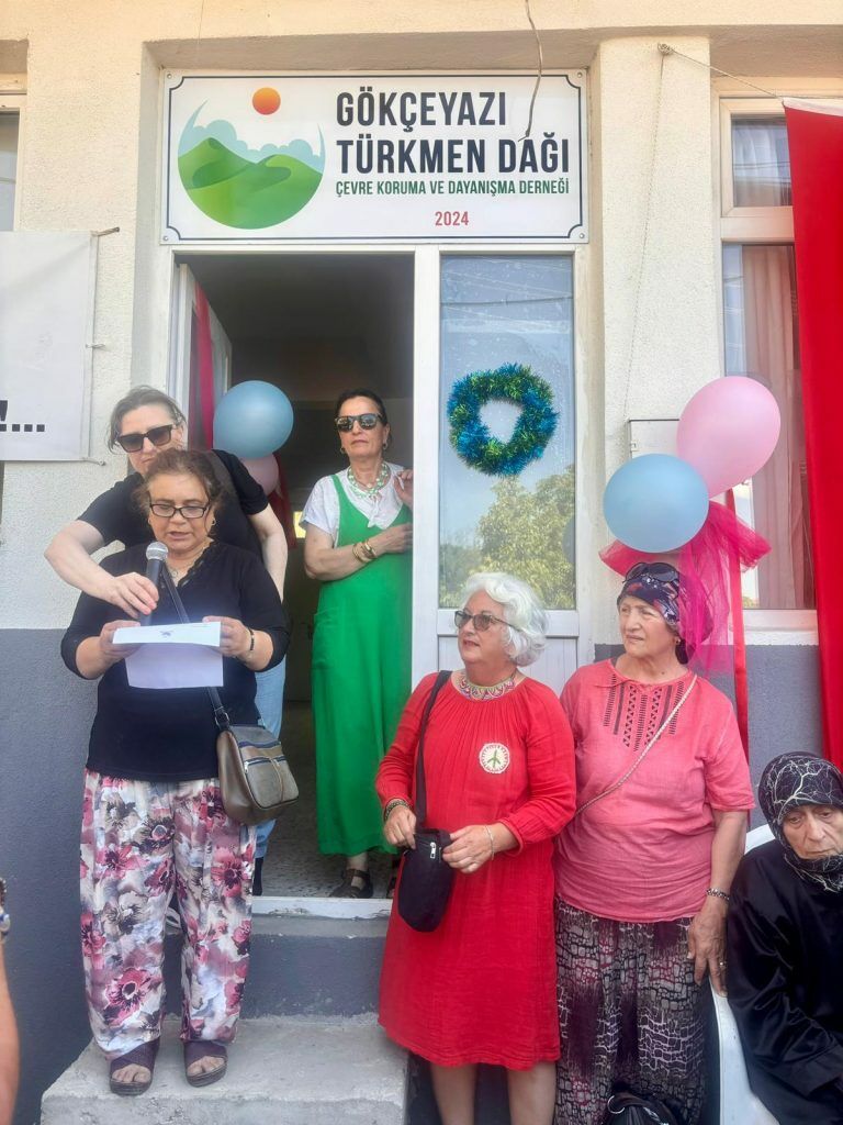 Gökçeyazı’da bulunan dernek merkezindeki açılış törenine Gökçeyazı, Sarıalan ve civar köylerde yaşayanlar, çevre dernekleri ve misafirler katıldı. Açılışa katılan dernek ve platformlar; Kazdağı Doğal ve Kültürel Varlıkları Koruma Derneği, Burhaniye Çevre Platformu, Ayvalık Tabiat Platformu, Balıkesir Çevre Platformu, Güney Marmara Dayanışması, KESK Balıkesir Şubeler Platformu, TÜM KÖY SEN Balıkesir Şubesi, Büro Emekçileri Sendikası ve çeşitli siyasi partiler oldu. Derneğin açılış töreninde söz alan Kazdağı Doğal ve Kültürel Varlıkları Koruma Derneği Başkanı Süheyla Doğan örgütlenmenin ve derneğin öneminden bahsetti ve açış konuşmaları Gökçeyazı Türkmen Dağı Çevre Koruma ve Dayanışma Derneği yönetim kurulu başkanı Av. Anıl Yılmaz ve Başkan Yardımcısı Raziye Yıldırım’a bıraktı. Raziye Yıldırım konuşmasında: “Bizim köyümüzün ve Türkmen Dağı’mızın üstü zaten altın. Bizim altın madenine ihtiyacımız yok. Bizim üretimimiz bize yetiyor. Madenin sağlayacağı işlere de ihtiyacımız yok. Biz havamızın, toprağımızın, suyumuzun kirlenmesini istemiyoruz. Temiz topraklarda, temiz gıdalarla, temiz hava soluyarak yaşamak istiyoruz. Bu topraklarımızı atalarımız, dedelerimiz kanları ile suladı. Bizim madenciye verecek bir karış toprağımız yok. Geldikleri gibi gitsinler. Bizleri huzursuz etmesinler. Biz hem köylülerimizin hakkını, hem kurdun, kuşun, hakkını savunuyoruz. Ormanlarımızın, su kaynaklarımızın yok olmasını istemiyoruz.” dedi. Konuşmaların ardından Gökçeyazı Türkmen Dağı Çevre Koruma ve Dayanışma Derneği Başkanı Av. Anıl Yılmaz ve Raziye Yıldırım tüm Gökçeyazılı kadınlarla birlikte kurdeleyi kestiler. Tüm misafirlerin dernek merkezindeki fotoğraf sergisini gezmelerinin ardından hep birlikte Gökçeyazı kapalı pazar yerine yüründü.