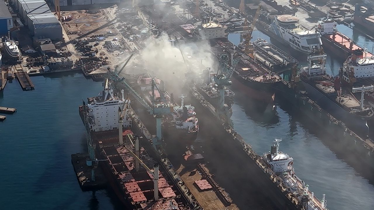 SON DAKİKA | Tuzla Tersanesinde Korkutan Yangın! Alevler Geminin Katlarına Sıçradı