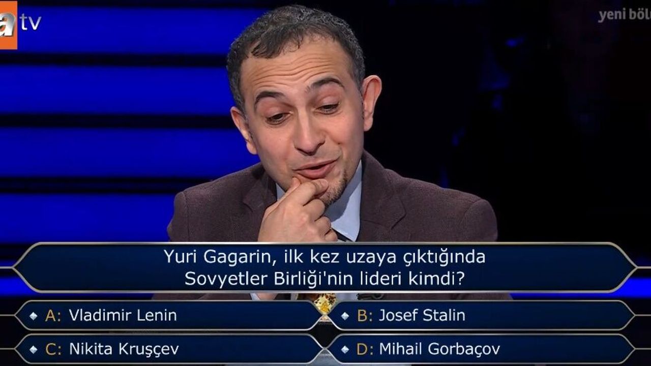 Ekrana gelen "Yuri Gagarin, ilk kez uzaya çıktığında Sovyetler Birliği'nin lideri kimdi?" sorusunun doğru cevabı C şıkkı, Nikita Kruşçev olacaktır.