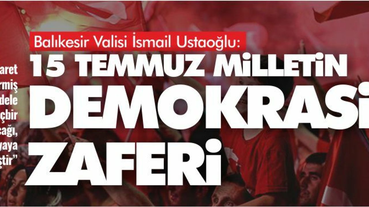 Bu vesileyle, milli birlik ve beraberlik içerisinde, devletinin ve milletinin yanında yer alarak demokrasi mücadelesi veren kahraman Balıkesir halkına şükranlarımı sunuyorum. Devletimiz, dün olduğu gibi yarın da bütün kurumları ve güvenlik güçleri ile aziz milletimizin destekleriyle ülkemizin birliğine, demokrasisine ve istiklâline kast eden bölücü terör örgütlerine ve hain odaklara karşı mücadelesine kararlılıkla devam edecektir.15 Temmuz Demokrasi ve Milli Birlik Günü’nün 8’inci yıl dönümü dolayısıyla; canını