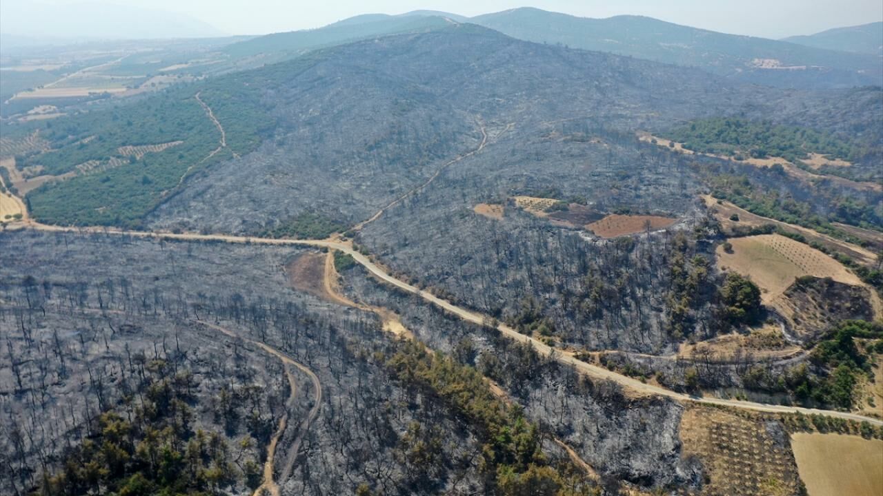 İzmir, Aydın, Manisa ve Uşak'ta ekiplerin aralıksız mücadele ettiği orman yangınları sonrası yeşil alanlar yerini gri renge bıraktı.