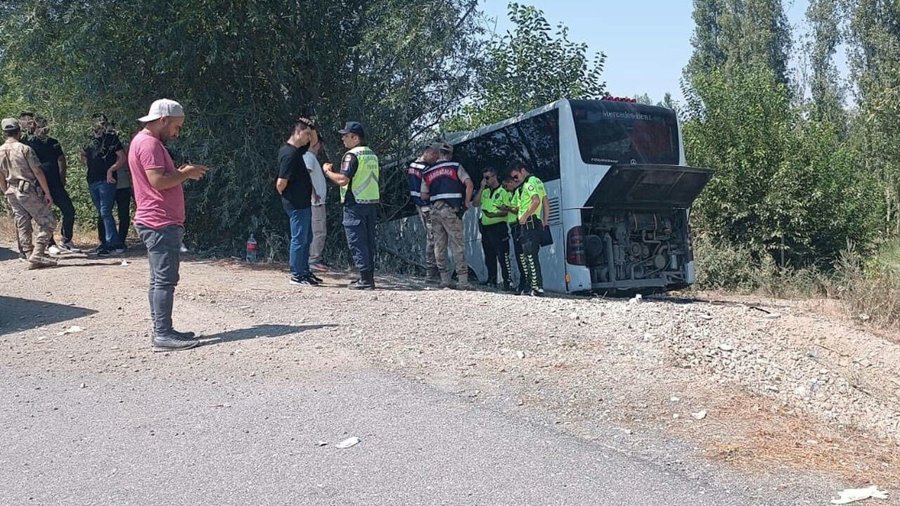 Iğdır'da yolcu otobüsünün yoldan çıkıp ağaca çarpması sonucu ilk belirlemelere göre 2'si ağır 14 kişi yaralandı.