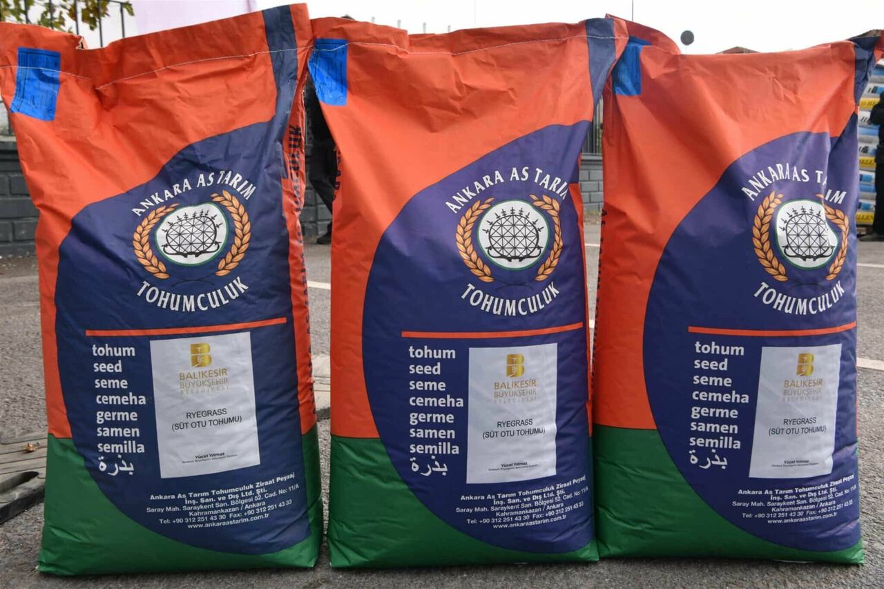Balıkesir Büyükşehir Belediyesi Kırsal Hizmetler Dairesi Başkanlığı tarafından İl Tarım ve Orman Müdürlüğü ile birlikte yürütülen “Yem Bitkileri Üretimini Geliştirme Projesi” kapsamında; 20 ilçeden 2 bin 600 üreticiye 130 bin kilogram süt otu tohumu dağıtıldı. Yüzde 75’i Büyükşehir Belediyesi, yüzde 25’i de üretici katkılı süt otu tohumları, İl Tarım ve Orman Müdürlüğü Binası bahçesinde düzenlenen törenle üreticilere teslim edildi. Törene, Balıkesir Büyükşehir Belediye Başkanı Yücel Yılmaz’ın yanı sıra; Karesi Kaymakamı Metin Arslanbaş, Karesi Belediye Başkanı Dinçer Orkan, Altıeylül Belediye Başkanı Hasan Avcı, İl Tarım ve Orman Müdürü Erkan Alkan, Damızlık Sığır Yetiştiricileri Birliği Başkanı Hasan Çetin, Karesi ve Altıeylül Süt Üreticileri Birliği Başkanı Cihat Şimşek, oda ve birlik başkanları, siyasi parti temsilcileri, muhtarlar ve üreticiler katılım gösterdi.