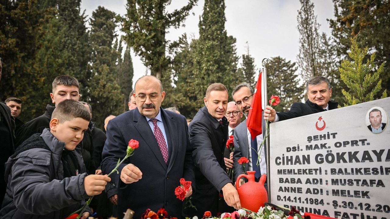 Balıkesir Valisi İsmail Ustaoğlu, Garnizon Komutanı Hava Pilot Tuğgeneral Gökhan Gürakar, Büyükşehir Belediye Başkanı Ahmet Akın, Harp Malulü Gaziler, Şehit Dul ve Yetimleri Derneği Başkanı Haydar Filiz’in Şehitler Anıtına çelenk sunmasıyla başlayan anma programında daha sonra Cumhurbaşkanı Recep Tayyip Erdoğan’ın mesajı okundu. Mesajın okunmasını müteakip günün anlam ve önemine ilişkin konuşmayı Hava Savunma Binbaşı Muhterem Çetiner yaptı. Vali İsmail Ustaoğlu’nun Şehitlik Defterini imzalamasının ardından şehit kabirlerinin başında Kur’an-ı Kerim okunarak İl Müftüsü Hasan Hayri Yaşar tarafından şehitler için dua edildi. Balıkesir Şehitliği’ndeki tören şehit kabirlerine karanfil bırakılmasının ardından sona erdi.